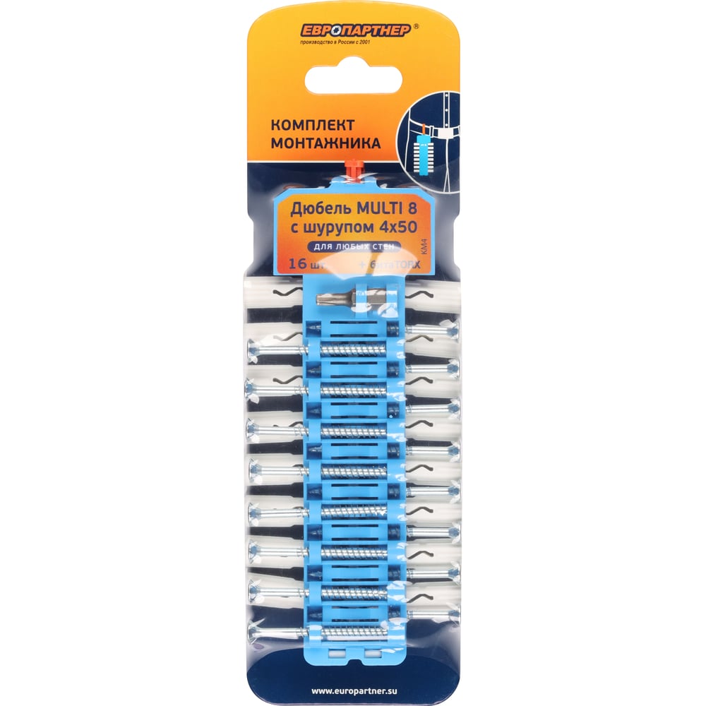 Набор дюбель ЕВРОПАРТНЕР Multi 8 шуруп 4х50 16 шт. KM4 0001