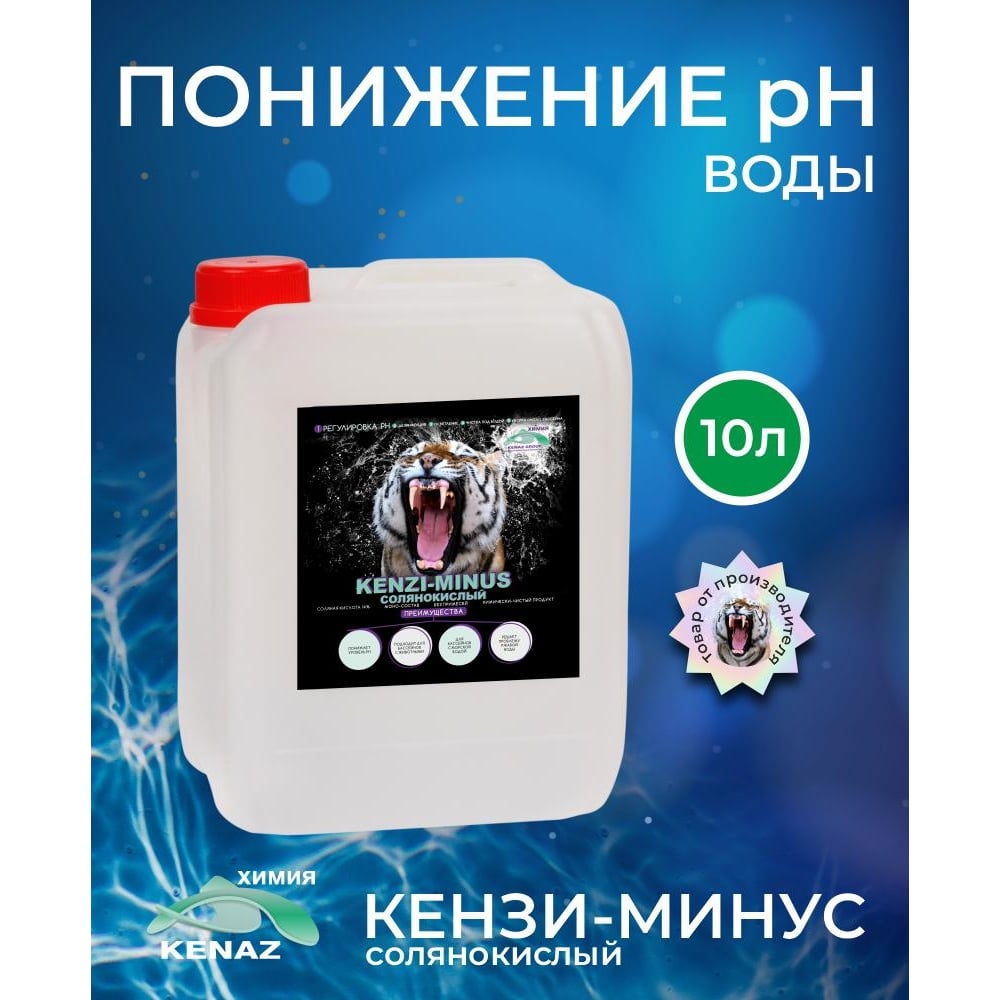 Средство для понижения уровня pH КЕНАЗ КЕНЗИ-МИНУС солянокислый (химия для бассейна), 10 л 384910