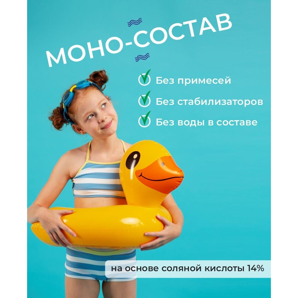 | Расход | Дозировка для понижения значения рН воды на 0,1 единицу: 0,1 л препарата на 10 м 3 воды |