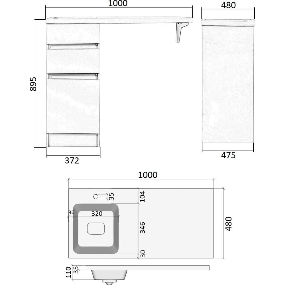 | Ширина раковины | 1000 мм |