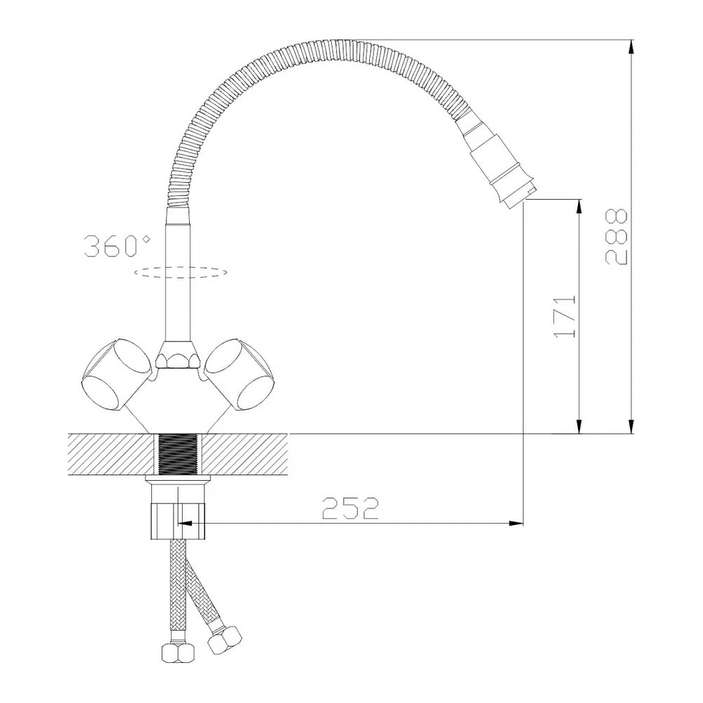 Смеситель для кухни Антей Луна с 2-мя рукоятками, с гибким изливом, крепление гайка 1/10 587336-ANT