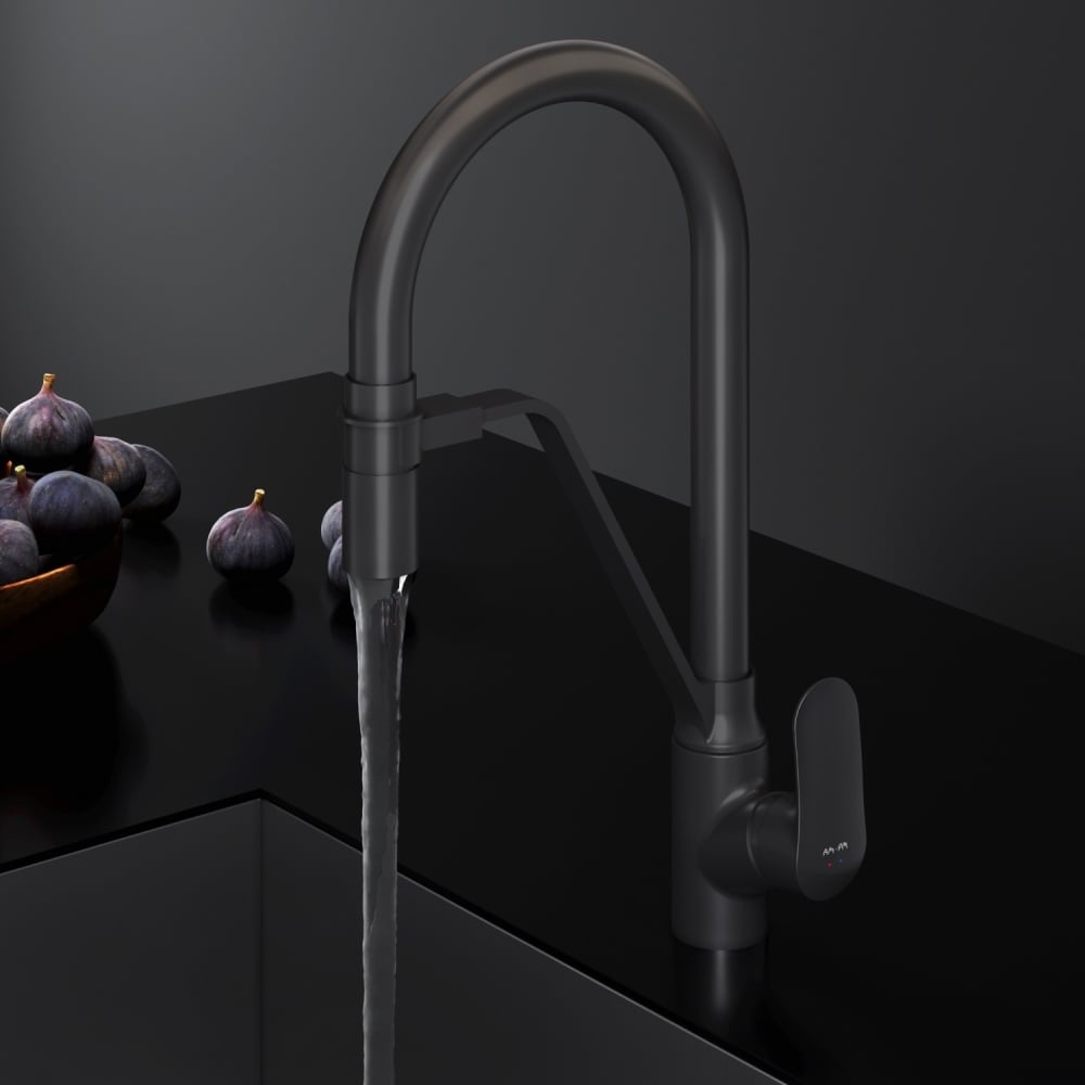 Смеситель для кухни AM.PM Like с каналом для питьевой воды и гибким изливом, черный F8007822