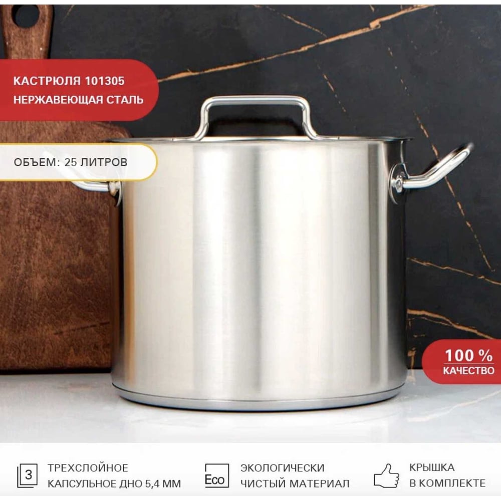 Кастрюля Viatto Commercial нержавеющая сталь с тройным дном 320x320 мм объем 25 л с двумя ручками 101305 62900