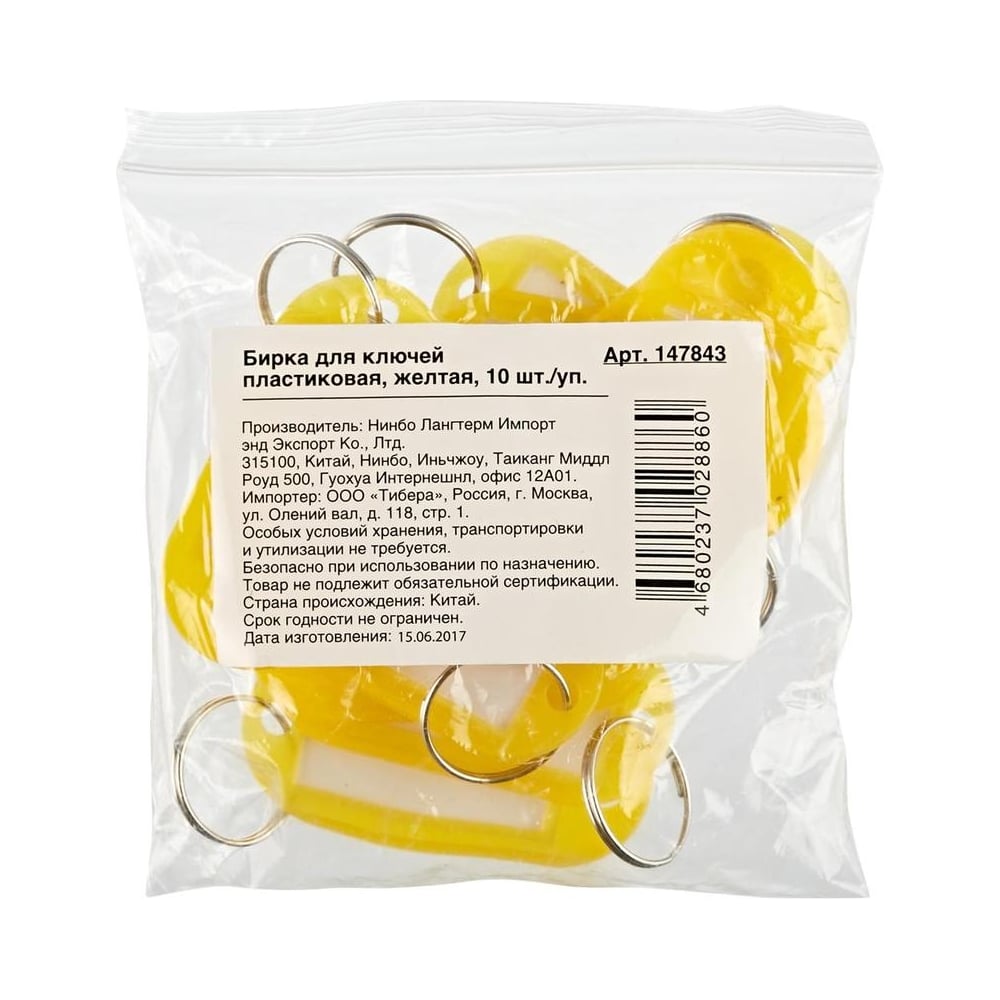 Бирки для ключей ООО Комус 10 шт., желтая 147843