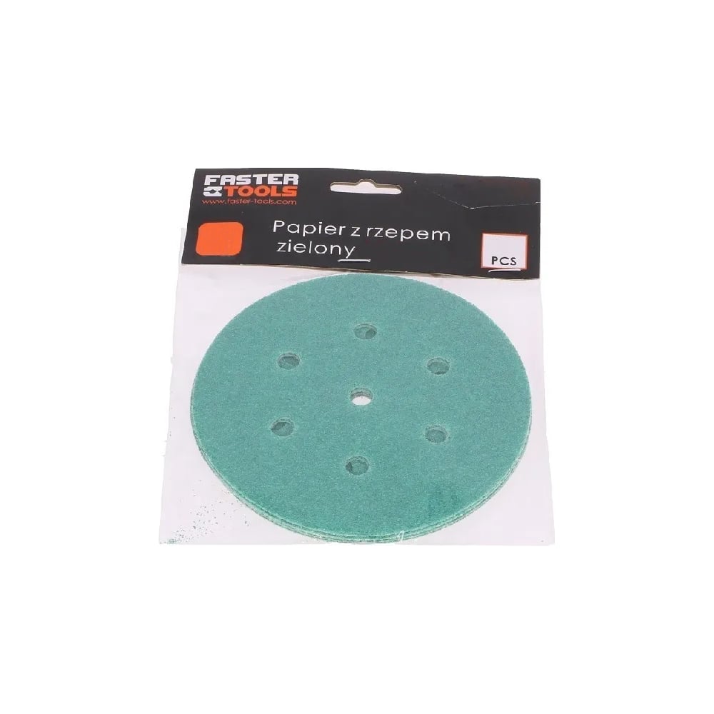 Круг шлифовальный на липучке - зелёный 125 мм, 5 шт, P80 FASTER TOOLS 8539