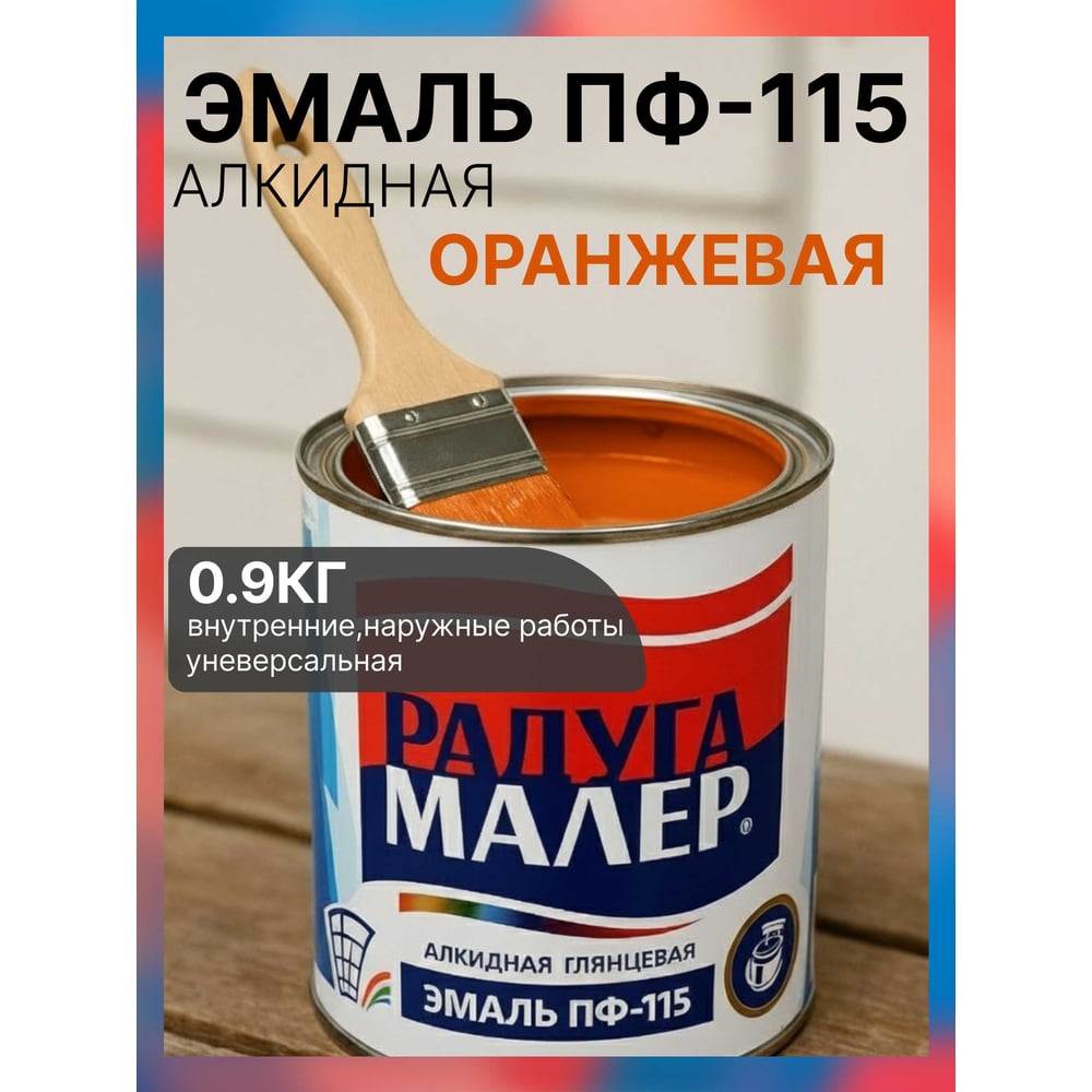 Краска быстросохнущая, атмосферостойкая Радугамалер ПФ-115 ГОСТ оранжевая 0,9кг 4650001273208