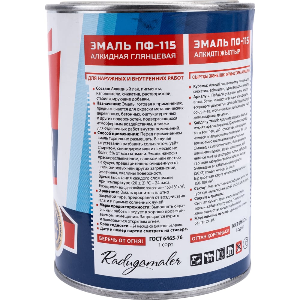 Быстросохнущая атмосферостойкая краска Радугамалер ПФ-115 ГОСТ 4650001273208