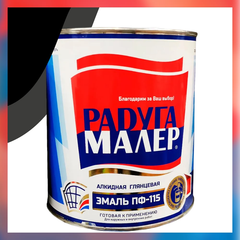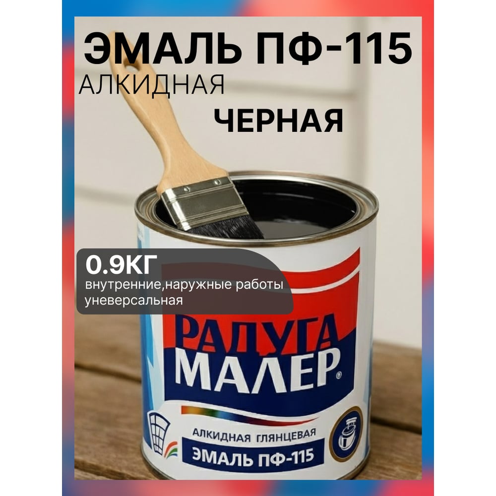 Краска быстросохнущая, атмосферостойкая Радугамалер ПФ-115 ГОСТ черная 0,9 кг 4650001272577
