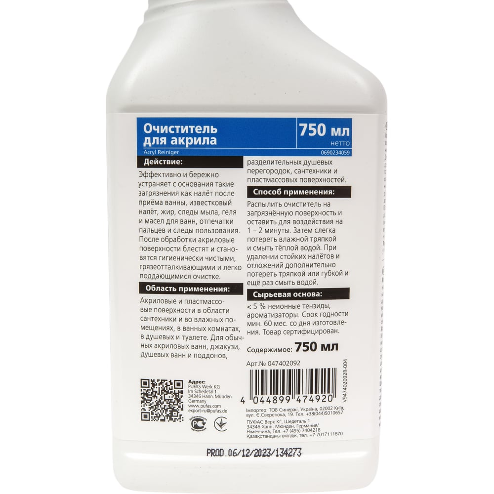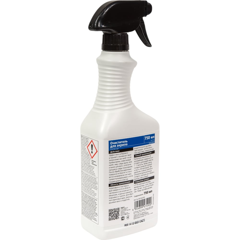 Объем 0.75 л Вес нетто 0.75 кг Состав < 5 % неионные тенсиды, органическая кислота, ароматизаторы: метилхлороизоциацолинон, метилизоциацолинон Количество в упаковке 1 шт Форма выпуска спрей Уровень рН 7 Подходит для акриловых ванн и раковин Срок хранения 5 лет