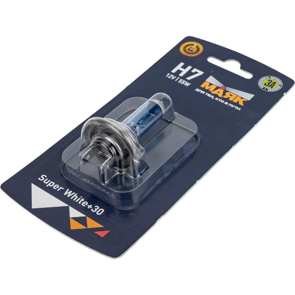 Лампа Маяк H7, 12V, 55W PX26d Super White+30%, в блистере 48138