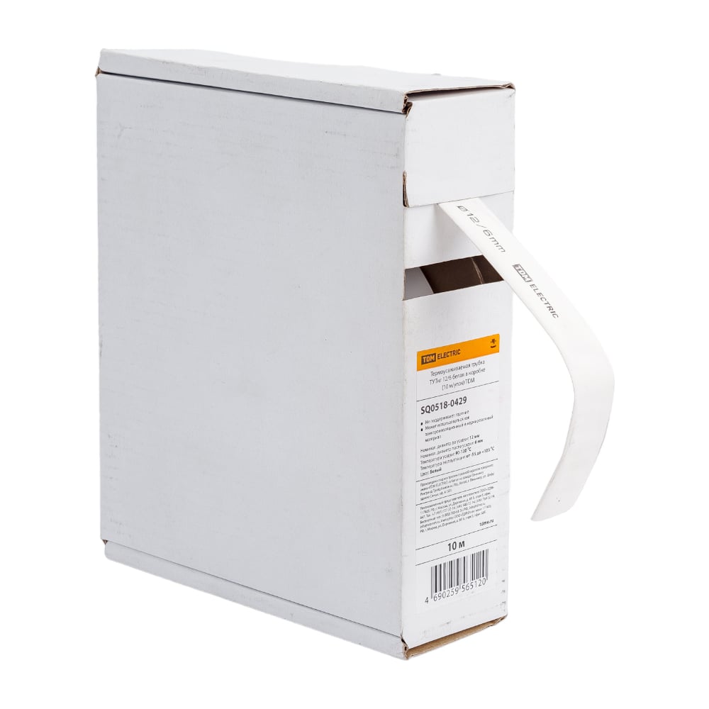 Термоусаживаемая трубка TDM ELECTRIC ТУТнг 12/6 белая в коробке (10 м/упак) SQ0518-0429