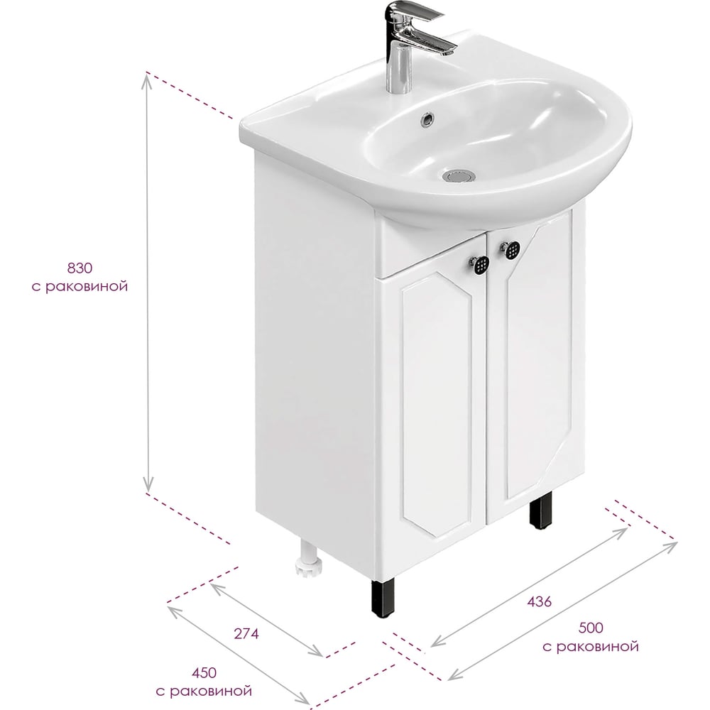Тумба с раковиной Onika Канны 50 напольная, белая 105003