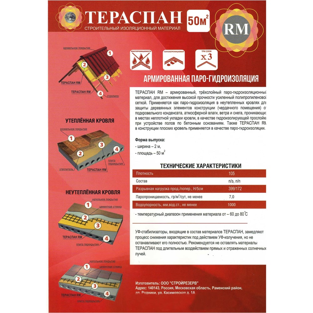 Трехслойный гидро-пароизоляционный материал ТЕРАСПАН RM 50 кв. м из двух слоев 4660077150457