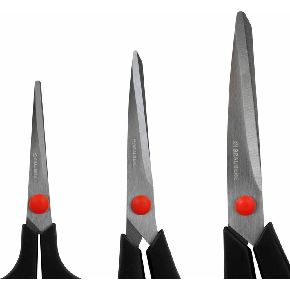 Ножницы BRAUBERG НАБОР 3 шт. (140, 190, 230 мм), черно-красные ручки, ВЫГОДНАЯ УПАКОВКА, 238168