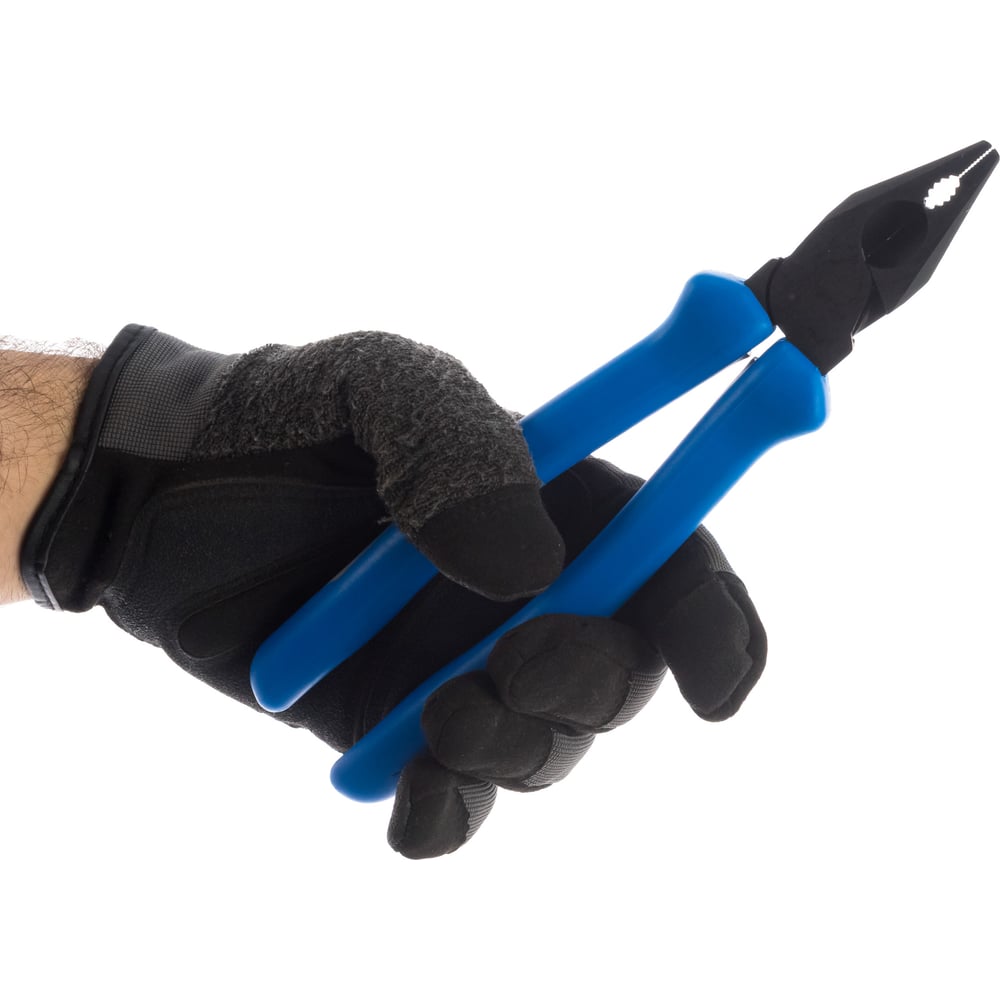 Длина 225 мм Тип комбинированные плоскогубцы Класс товара Профессиональный Вес нетто 0.446 кг ГОСТ DIN ISO 5746 Диэлектрическое покрытие нет Материал губок CrV Рукоятки-чехлы двухкомпонентные Функция "антистатик" нет Форма губок прямая с полукругом и режущей кромкой С возвратной пружиной нет Зачистка круглых кабелей нет Насечка частичная Возможность перекусить проволоку есть Для скручивания проволоки нет Цвет рукояток синий/серый Двухшарнирные нет