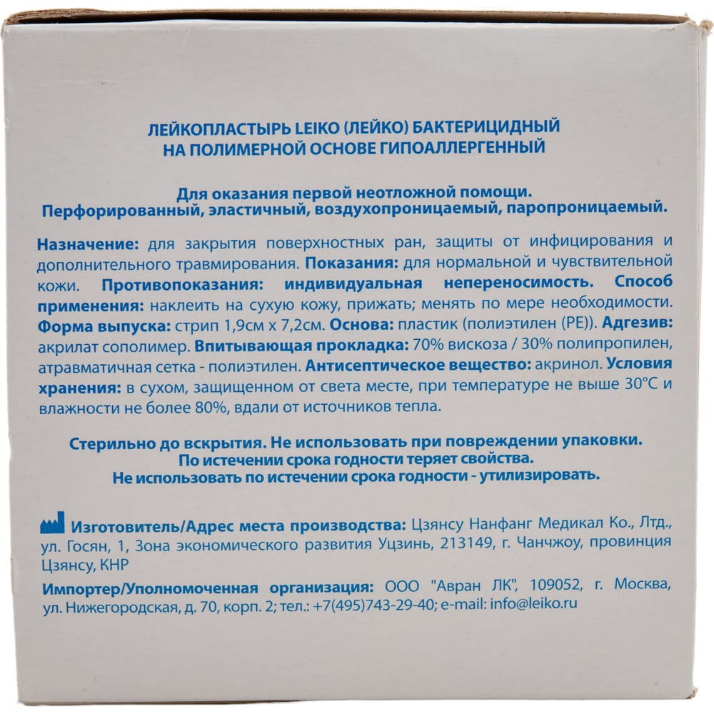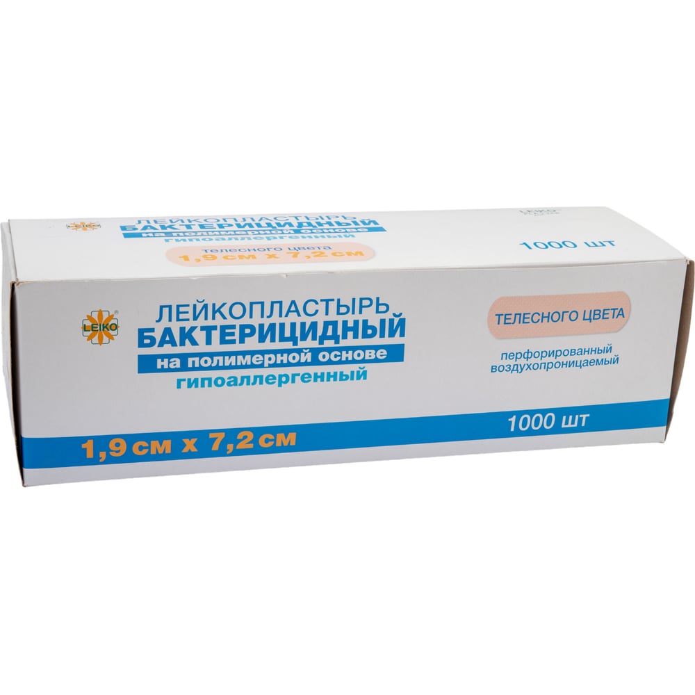 Бактерицидный лейкопластырь LEIKO 1000шт 1,9х7,2 см на полимерной основе телесного цвета 213575 630249