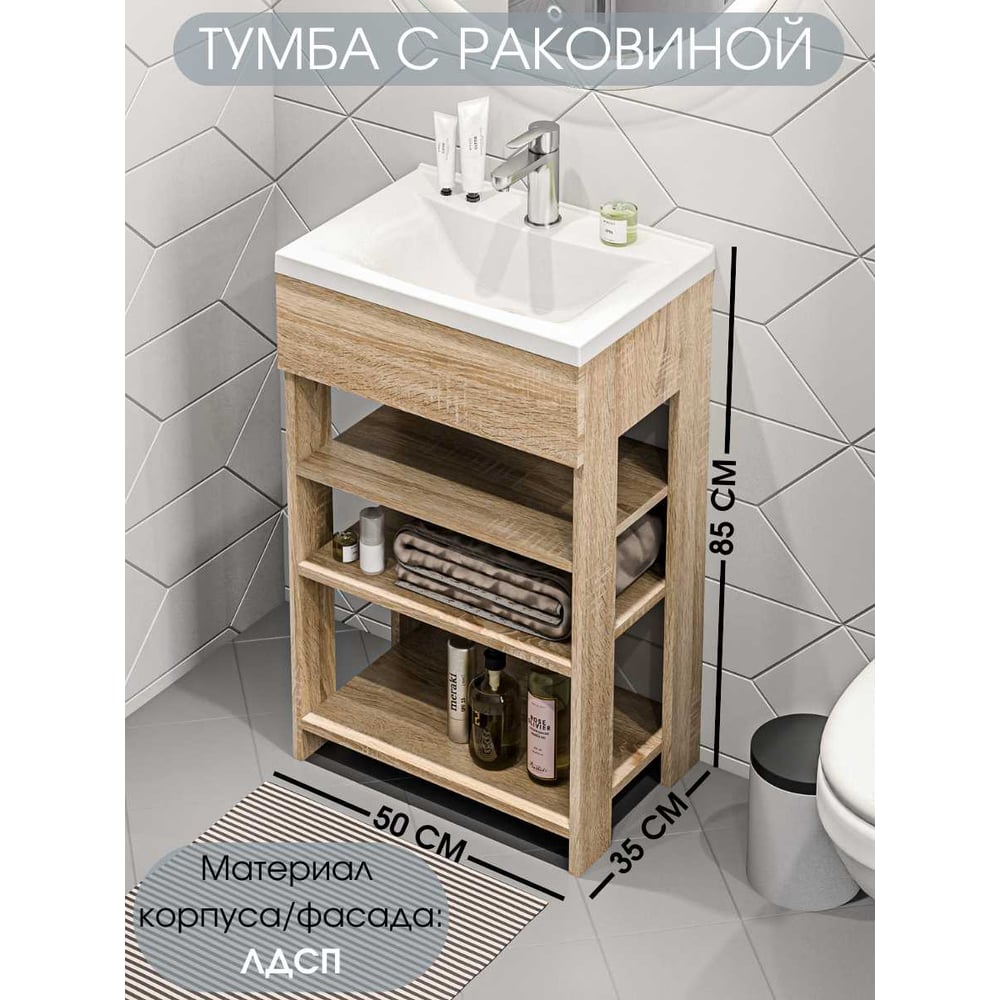 Тумба с раковиной в ванную 1Marka Revo 50 см напольная Дуб Сонома У98621