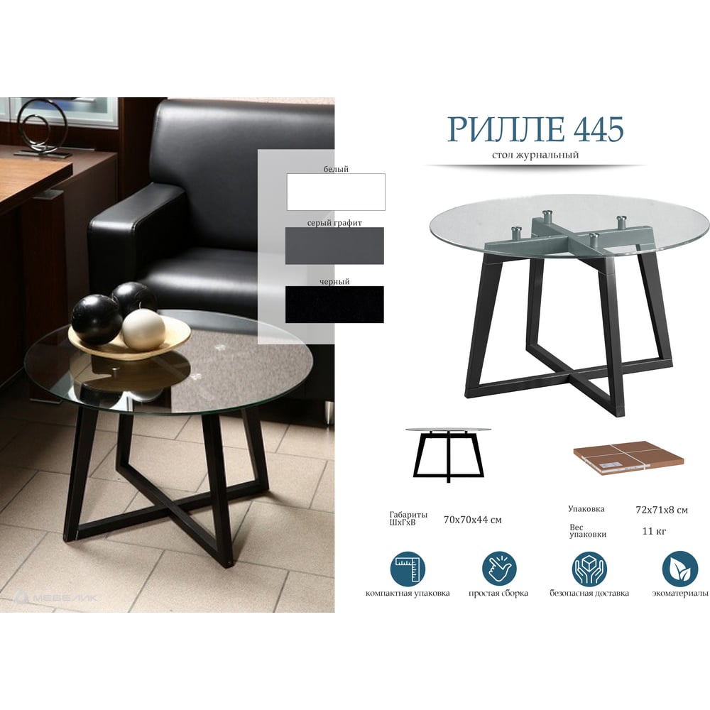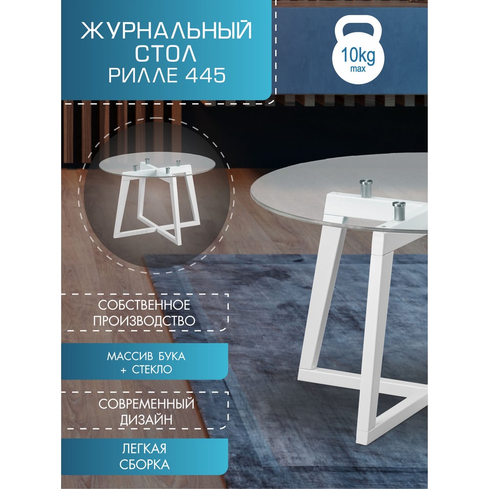 Журнальный стол Мебелик Рилле 445 белый, стекло, прозрачный, круг 6815