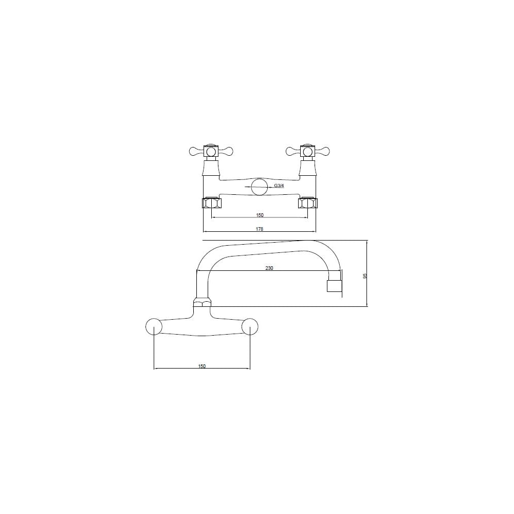 Смеситель для кухни SANTREK СТЕНА AQUA-495 "CLASSIC" 1/2 м/к Крест SL595 276633