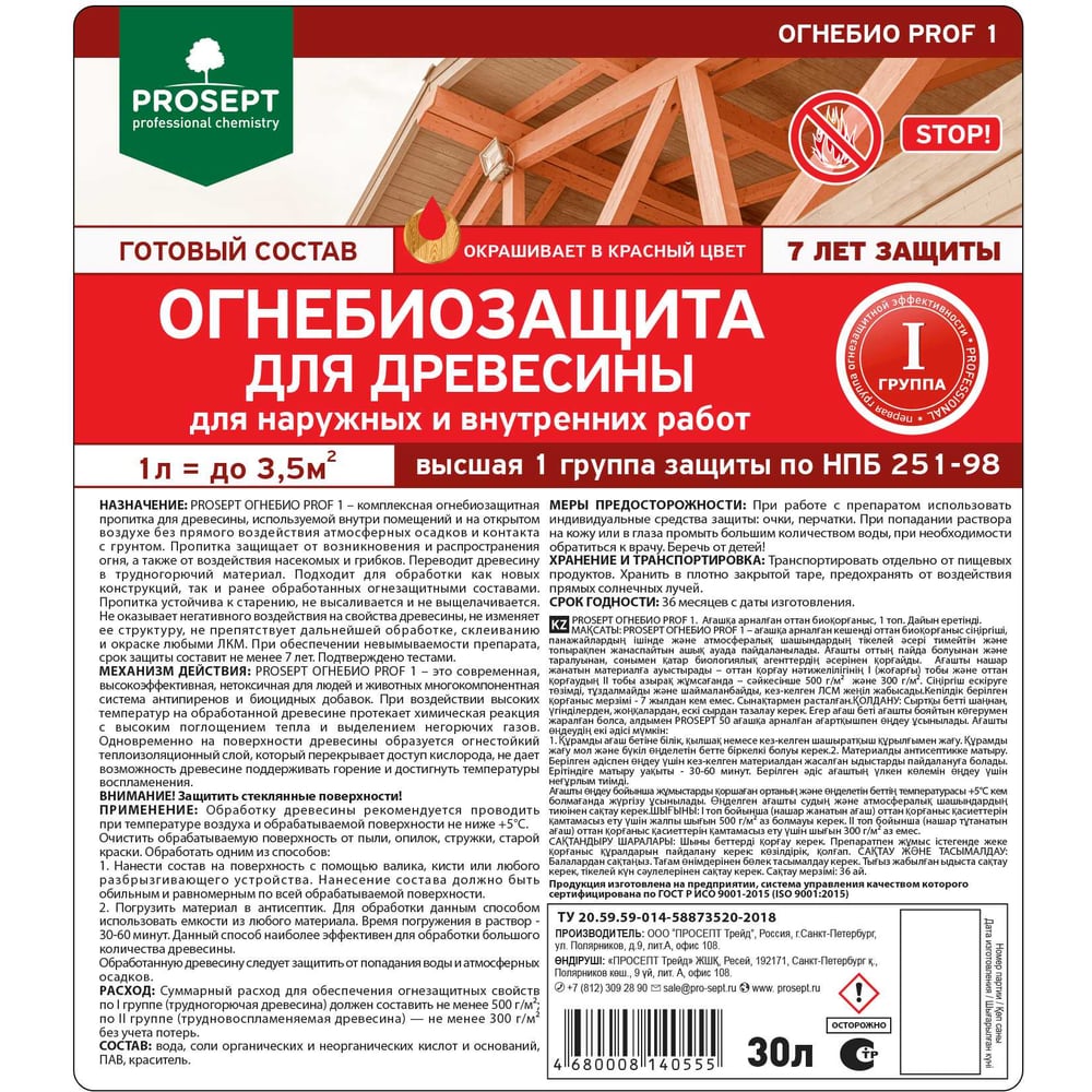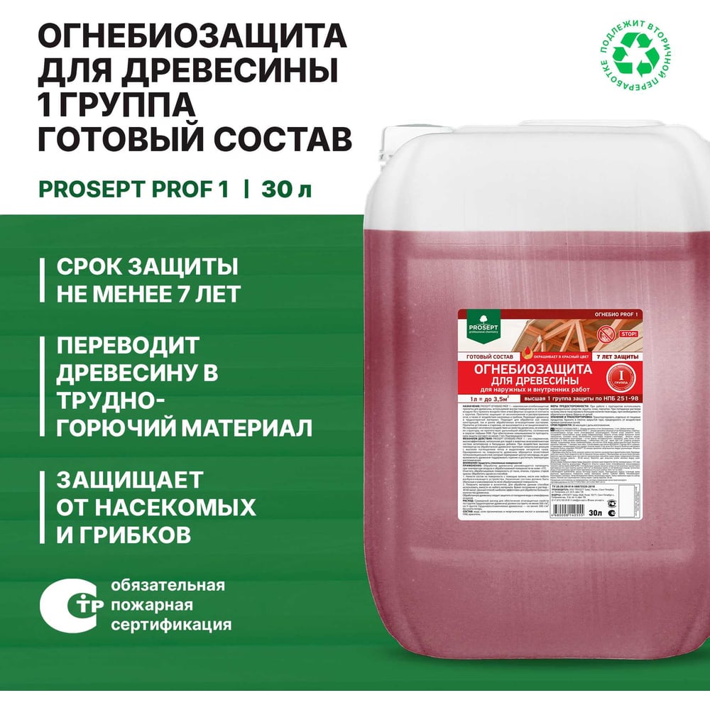 Огнебиозащита для древесины PROSEPT ОГНЕБИО PROF 1, 1 группа 30 л 007-30