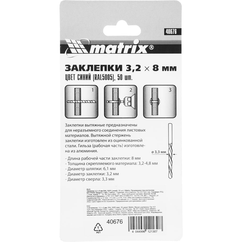 Заклепки RAL 5005 (3.2х8 мм; синий) 50 шт. MATRIX 40676