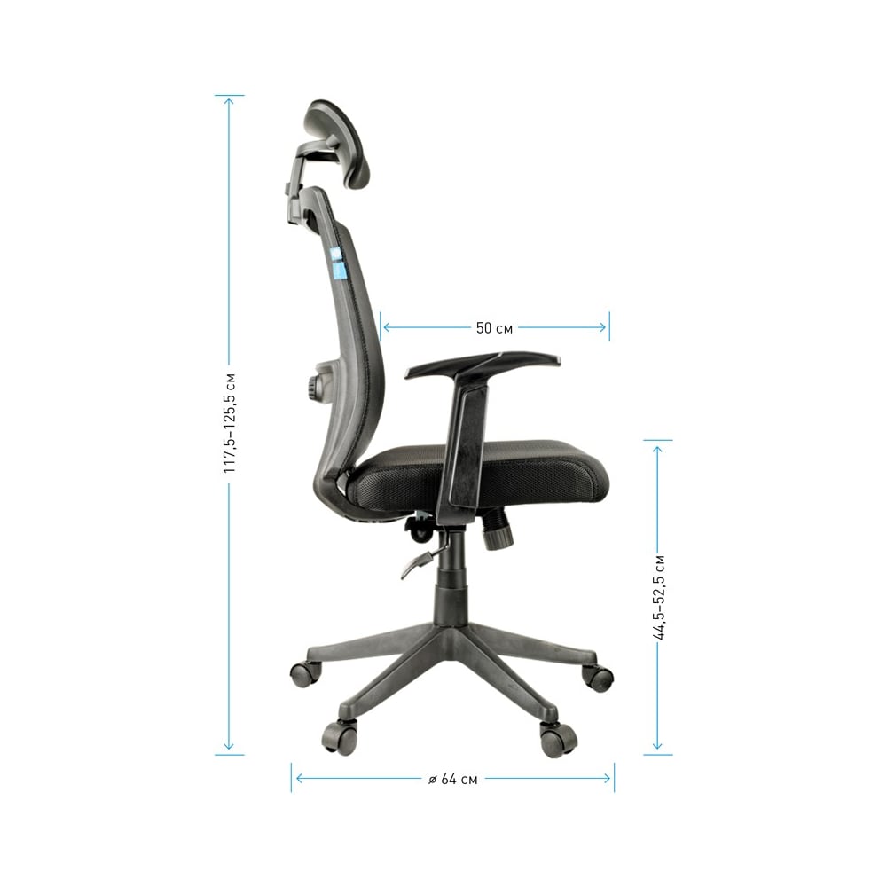Габариты без упаковки 1175/1255х640х640 мм Вес нетто 14.2 кг Регулировка высоты сиденья да Требует сборки да Подлокотники да Подъемный механизм да Механизм качания да Регулировка высоты спинки нет Регулировка высоты подлокотников нет Механизм вращения да Подголовник да Регулировка наклона спинки да Подставка для ног нет Max нагрузка 120 кг Ширина сиденья 485 мм Глубина сиденья 500 мм Ширина спинки 485 мм Высота спинки 640 мм Min высота сиденья 445 мм Мах высота сиденья 525 мм Поясничный упор есть Цвет спинки черный Материал крестовины пластик Материал подлокотников пластик Цвет сиденья черный Материал обивки сетка/ткань