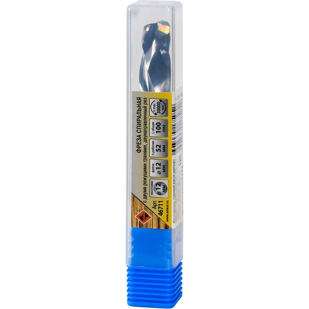 Фреза спиральная твердосплавная Z2, двунаправленный рез, 12x52 мм, хв-к 12 мм Энкор 46711