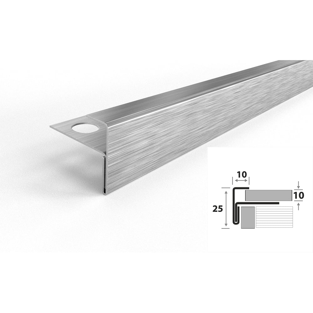 Профиль угловой F-образный под плитку ЛУКА (10 мм, 2,7 м, нержавеющая сталь) УТ000063946
