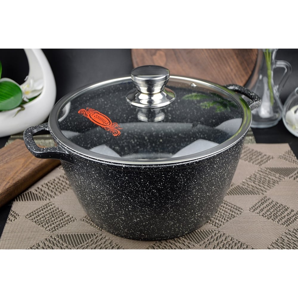 Кастрюля Горница Гранит 5 л, литая ручка, с крышкой, СП2775