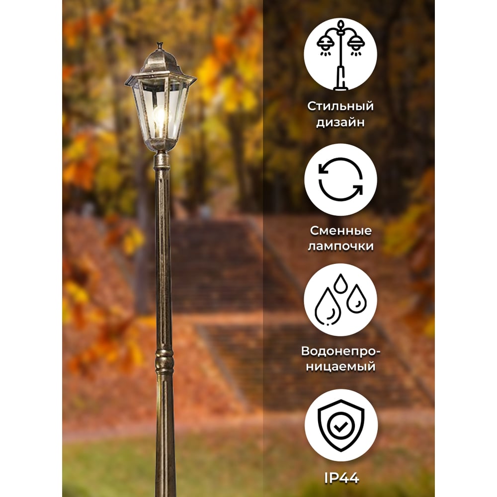 Садово-парковый светильник, столб 100W E27 230V, черное золото Feron 6211 11206