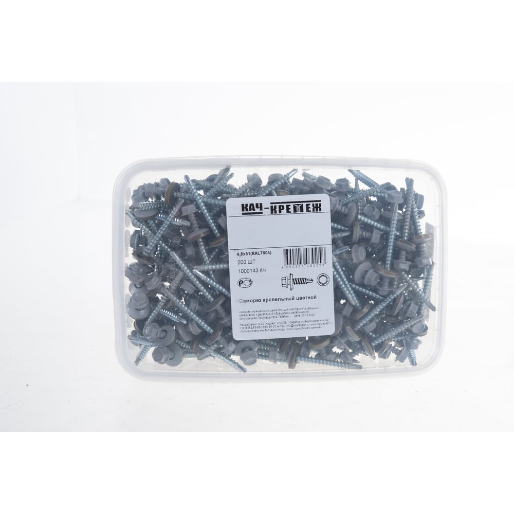 Кровельный саморез Качественный КРЕПЕЖ серый RAL 7004, 4.8х51 мм, 200 шт 1000143 КЧ