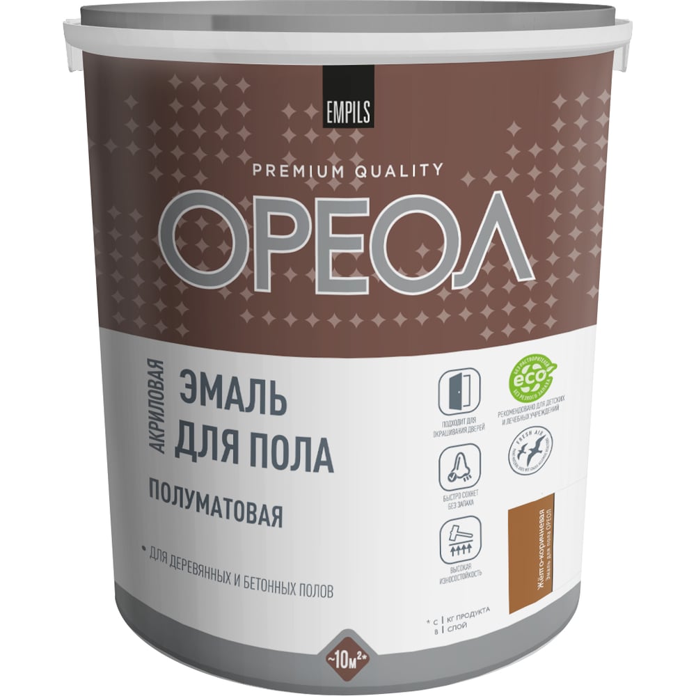 Акриловая эмаль для пола Ореол (полуматовая; желто-коричневая; 2.3 кг) 73364
