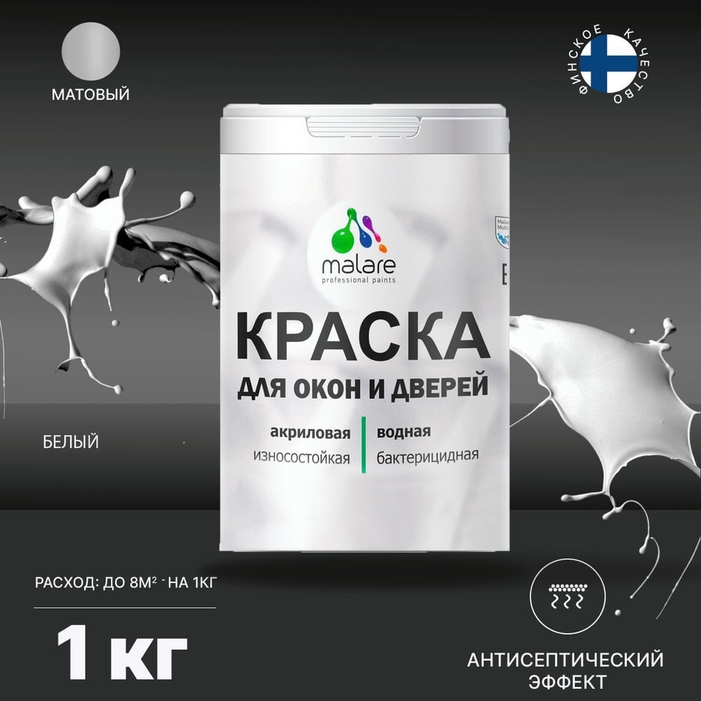 Краска для деревянных окон и дверей MALARE белый, 1 кг КЛТКСАБЕЛМ0100