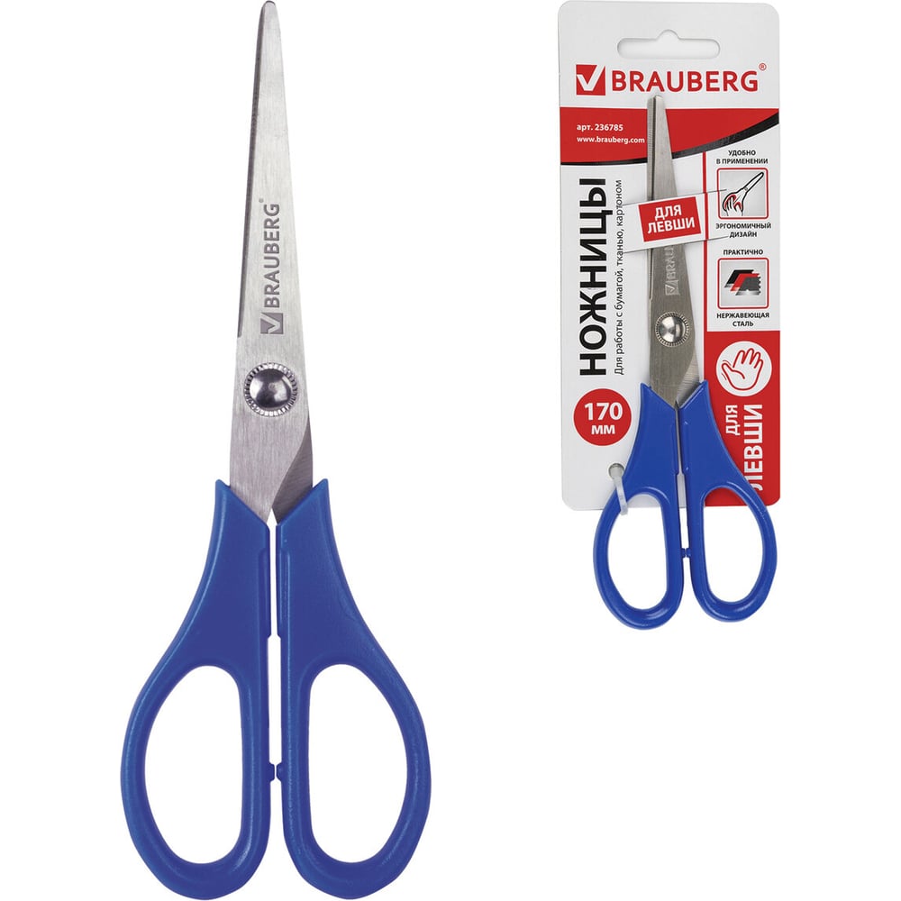Ножницы для левши BRAUBERG Left hand 170 мм, 2-х сторонняя заточка, синие 236785