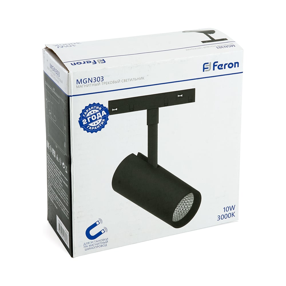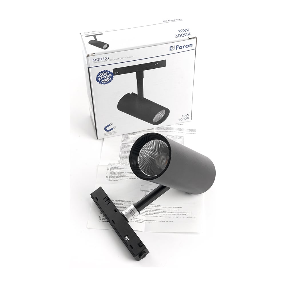 Светодиодный магнитный светильник FERON MGN303 трековый низковольтный 10W, 900 Lm, 3000К, 35 градусов, черный 41949