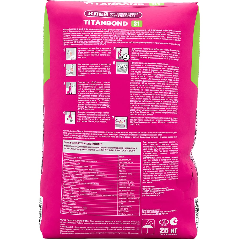 | Вес нетто | 25 кг |