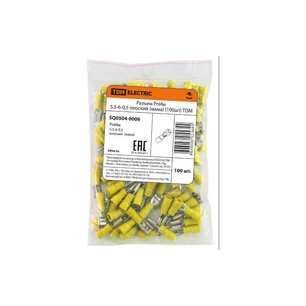 Разъем TDM ELECTRIC РпИм 5,5-6-0,5 плоский мама 100шт SQ0504-0006