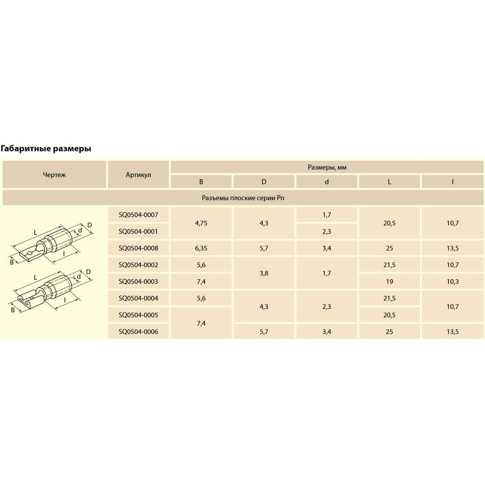 Материал латунь никелированная Цвет желтый Тип плоский разъем Тип монтажа опрессовка/обжим Номинальный ток 24 А Количество в упаковке 100 шт Модельный ряд РпИм Палитра желтый Изоляция ПВХ Наличие изоляции да Сечение провода 6 мм² Тип разъема плоский "мама" Ширина х Толщина 7.4х0.5 мм