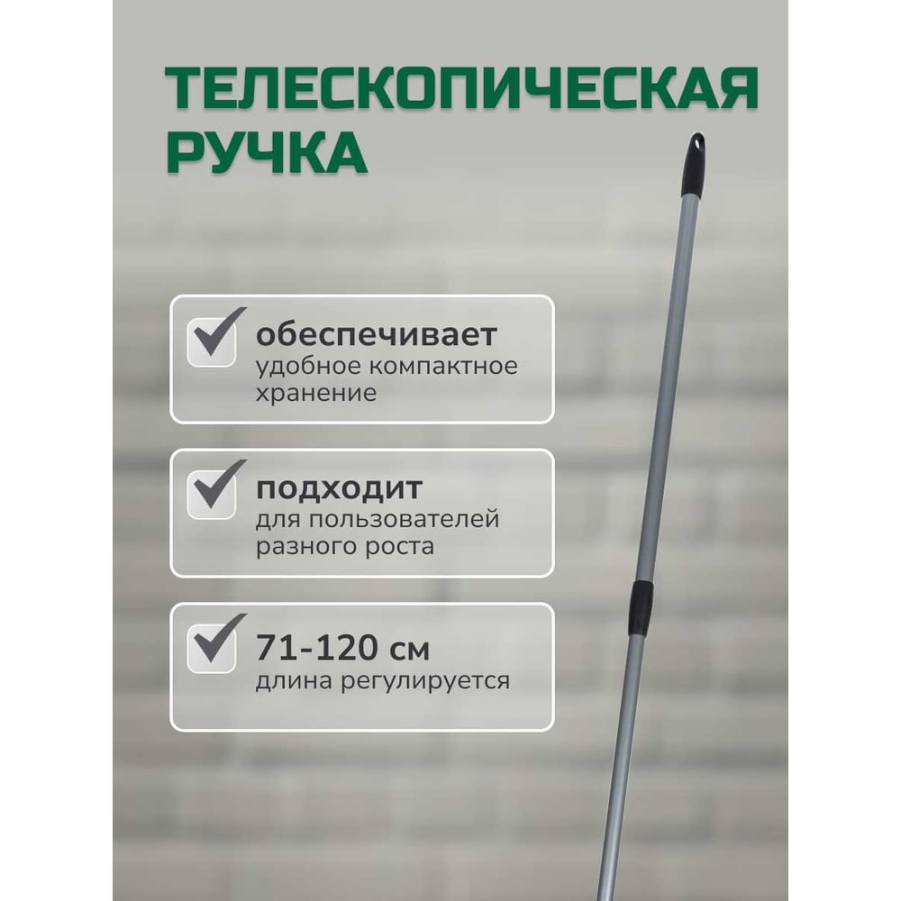 Плоская швабра для влажной уборки In'Loran микрофибра 44x13 см телескопическая ручка 71-120 см BS-012GR