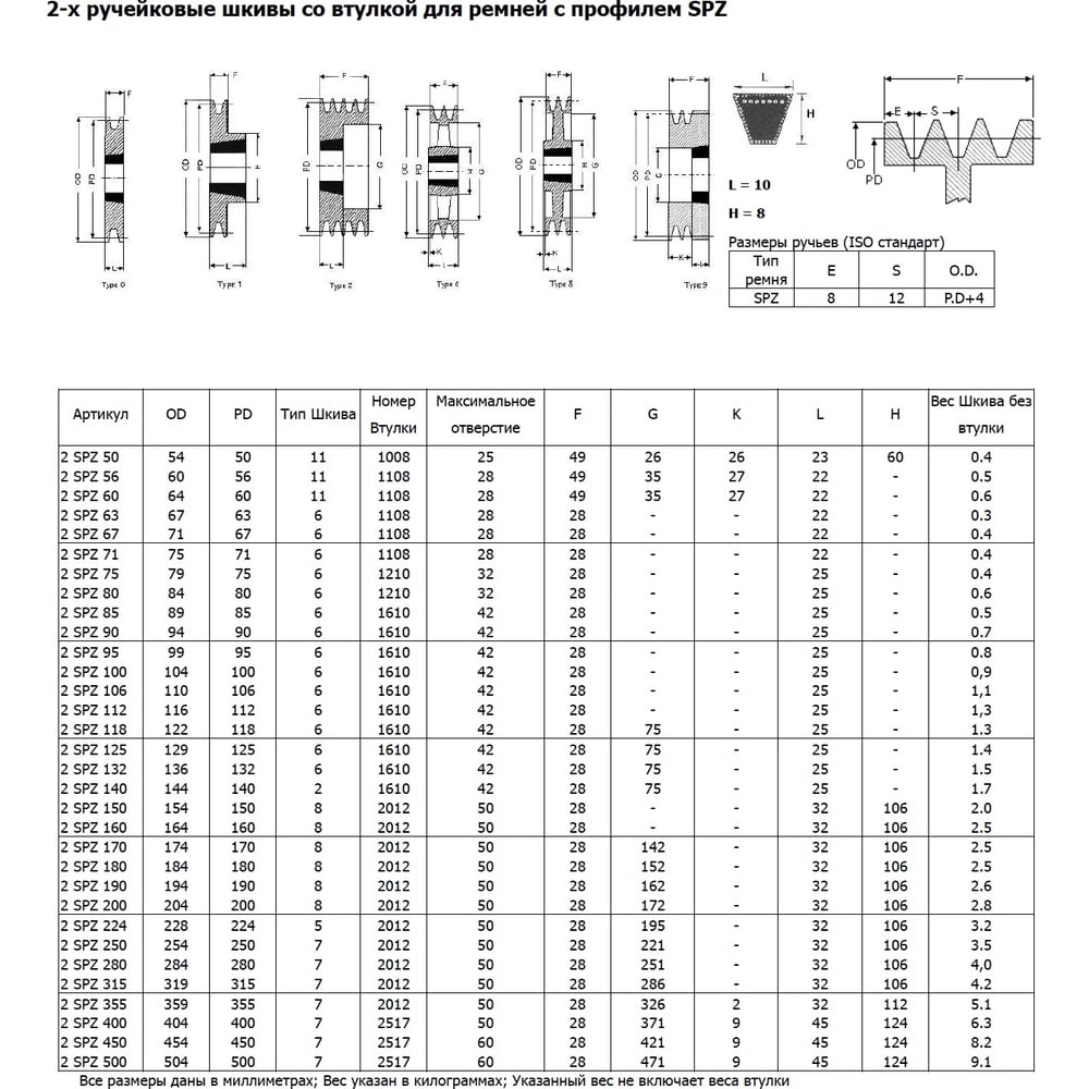 | Тип посадочного отверстия | под втулку Taper Bush |