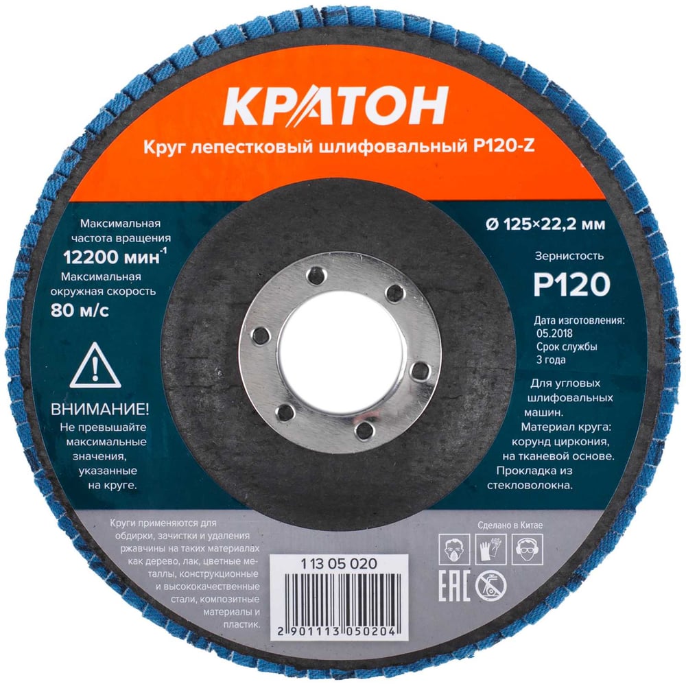 Круг лепестковый шлифовальный Кратон 125 мм P120-Z 1 13 05 020