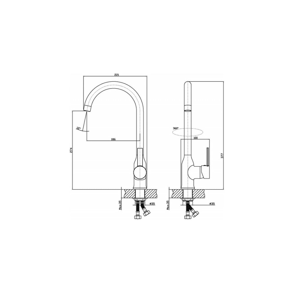 Смеситель для кухни Zollen Gera высокий излив, картридж 35 мм GE74611332 448018