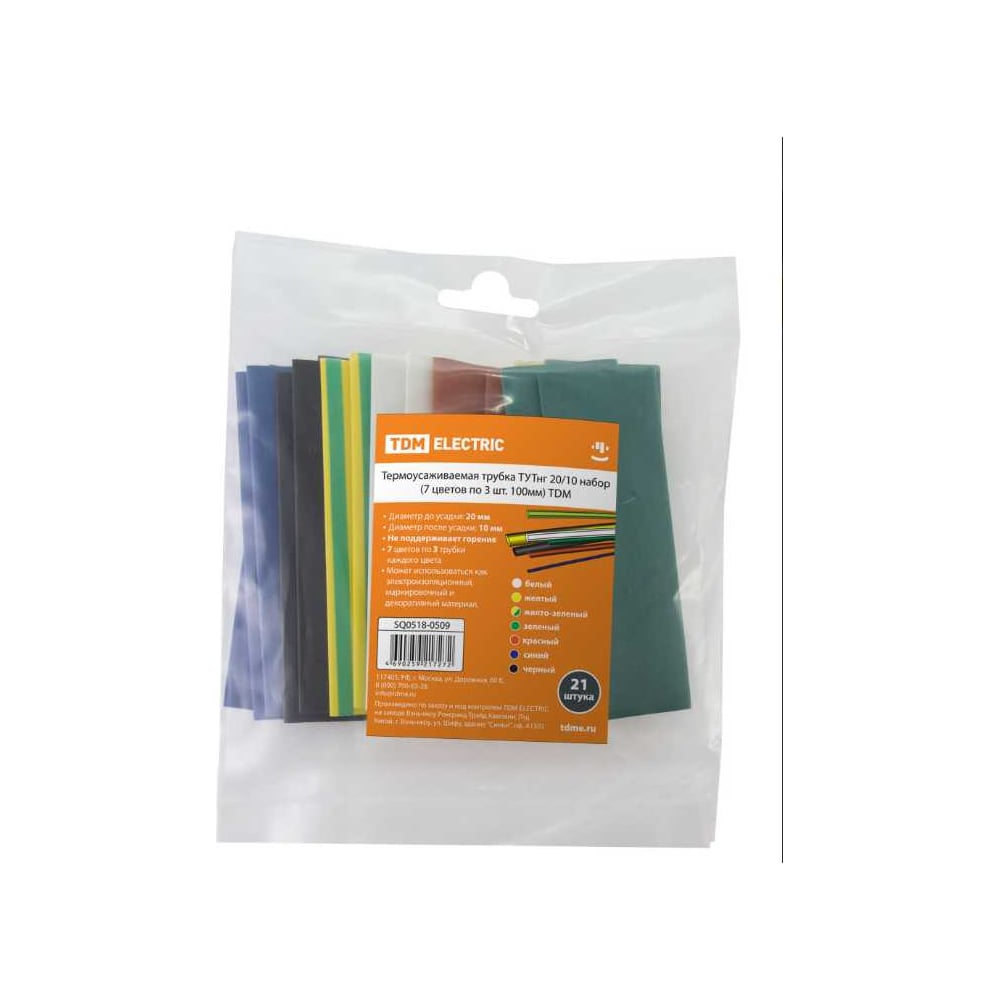 Набор термоусадок 7 цветов по 3 штуки TDM ELECTRIC d=20, 100мм SQ0518-0509