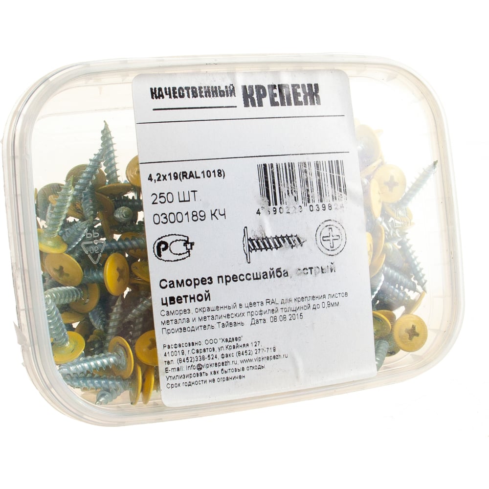 Прессшайба Качественный КРЕПЕЖ 4.2х19 мм, желтый цинк RAL 1018, острый, 250 шт 0300189 КЧ
