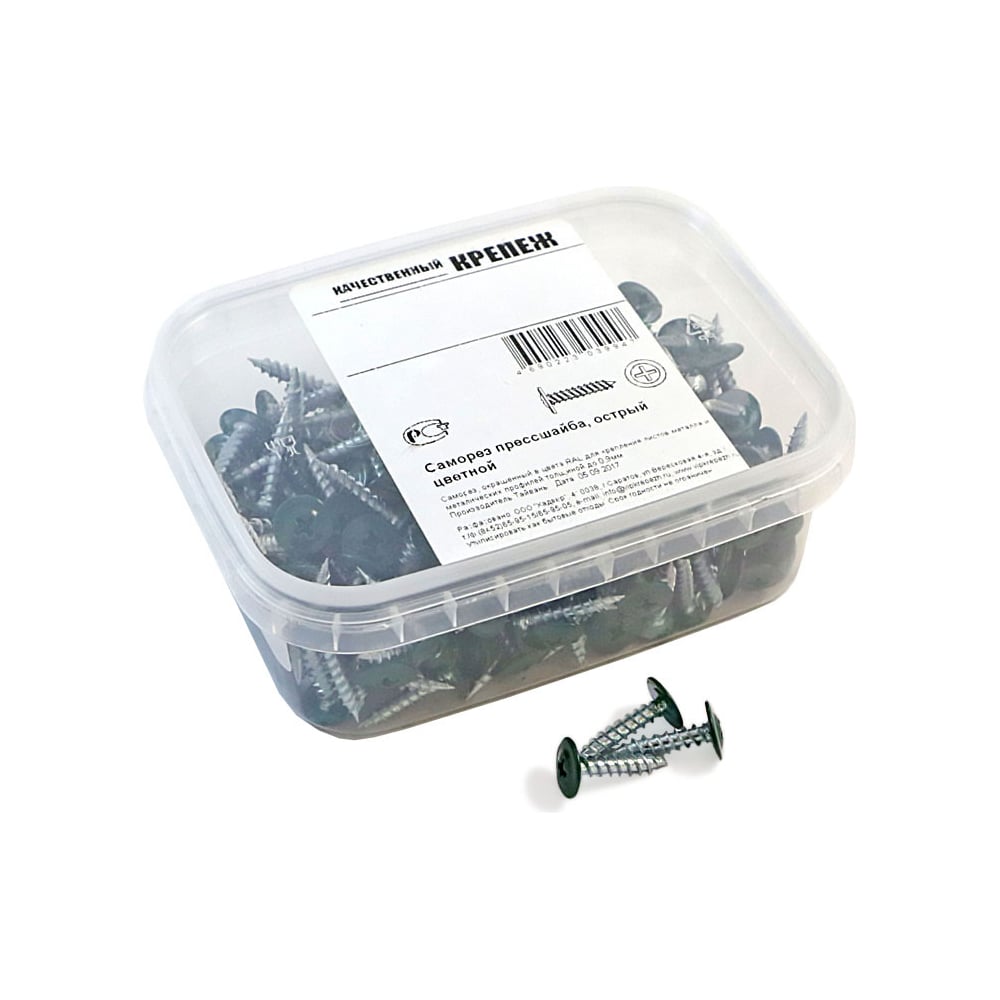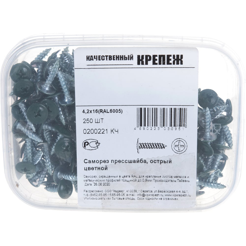 Прессшайба Качественный КРЕПЕЖ 4.2х16 мм, зеленый мох RAL 6005, острая, 250 шт 0200221 КЧ
