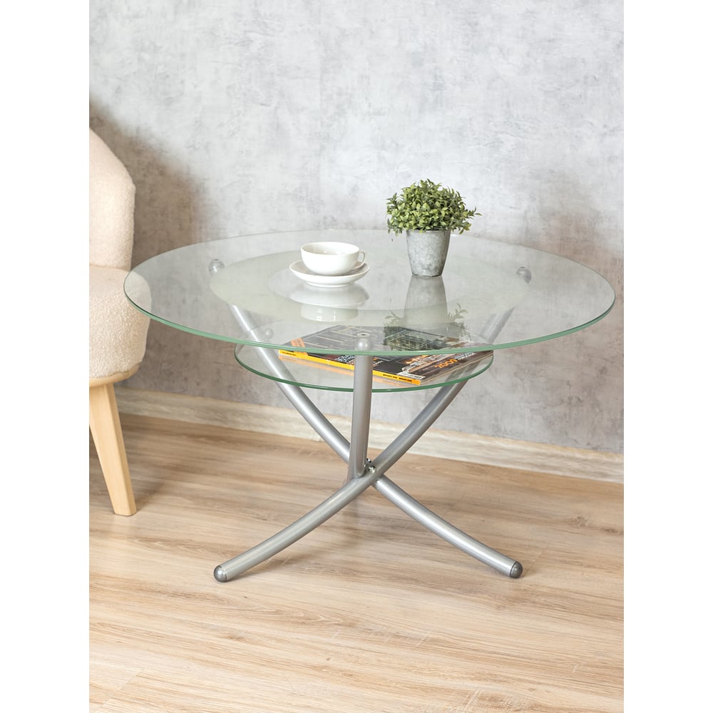 Журнальный стол Мебелик Дуэт 4 металлик, прозрачный 1036