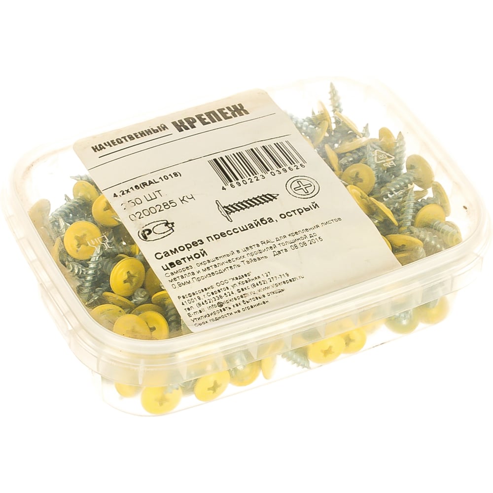 Острый саморез с прессшайбой качественный крепеж 4,2/16 RAL1018 желтый цинк (250 шт.) 0200285