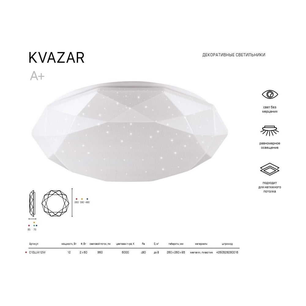 | Материал плафона | пластик |