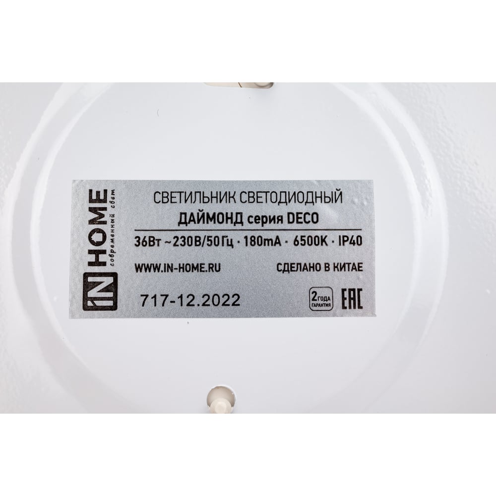 Светодиодный светильник IN HOME серии DECO 36Вт 230В 6500К 3240лм 350х55мм ДАЙМОНД 4690612033730