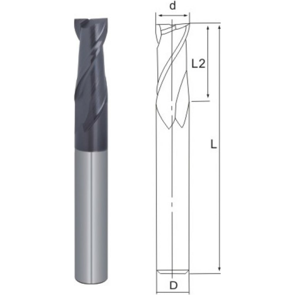 Концевая фреза TTM тв/сплав. D8.Z2.08x19x63.35 TiAlN без фаски 4603390580075